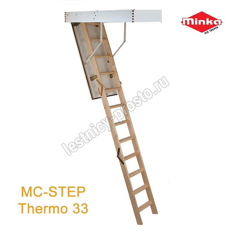 Раскладная трехсекционная чердачная лестница MC STEP изготовлена из массива сосны/ели;