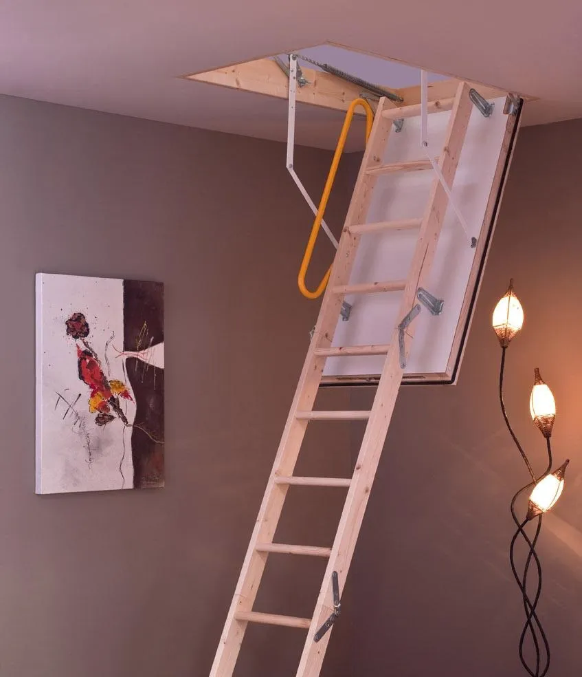 Модель EXTRA идеальна для условий, когда чердак плохо утеплен и требует дополнительной теплоизоляции. По контуру короба одинарный уплотнитель. Лестница имеет нескользящие ножки, которые идеально прилегают к земле, предотвращают появление царапин на поверхности пола и придают эстетичный вид после ее резки. 4-х секционная складная чердачная лестница. Высота потолка до 3350 мм.