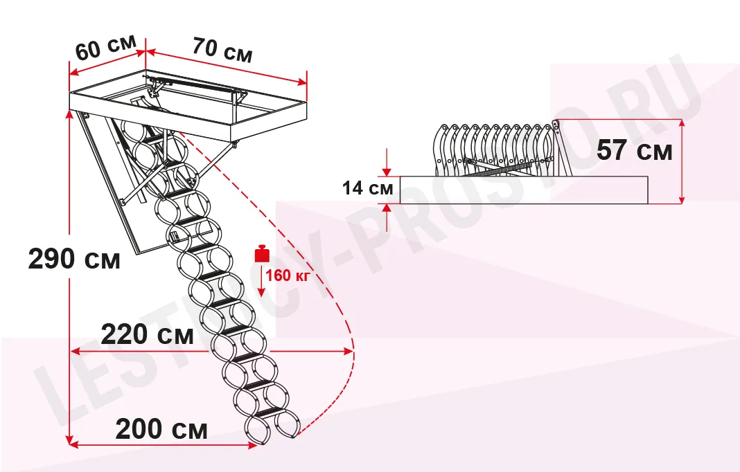 Чердачная лестница с люком OMAN NOZYCOWE TERMO 60х70 см, h-290 см