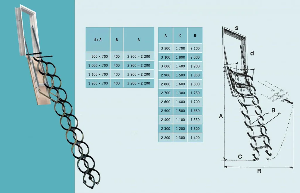 Чердачная лестница с люком OMAN NOZYCOWE VERTICALE 70х120 см, h-300 см