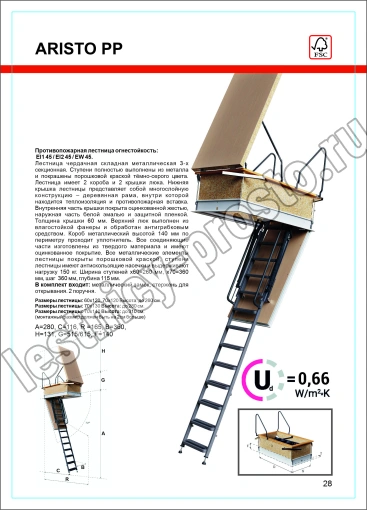 Противопожарная чердачная лестница с люком OMAN ARISTO PP 70х130 см, h-280 см