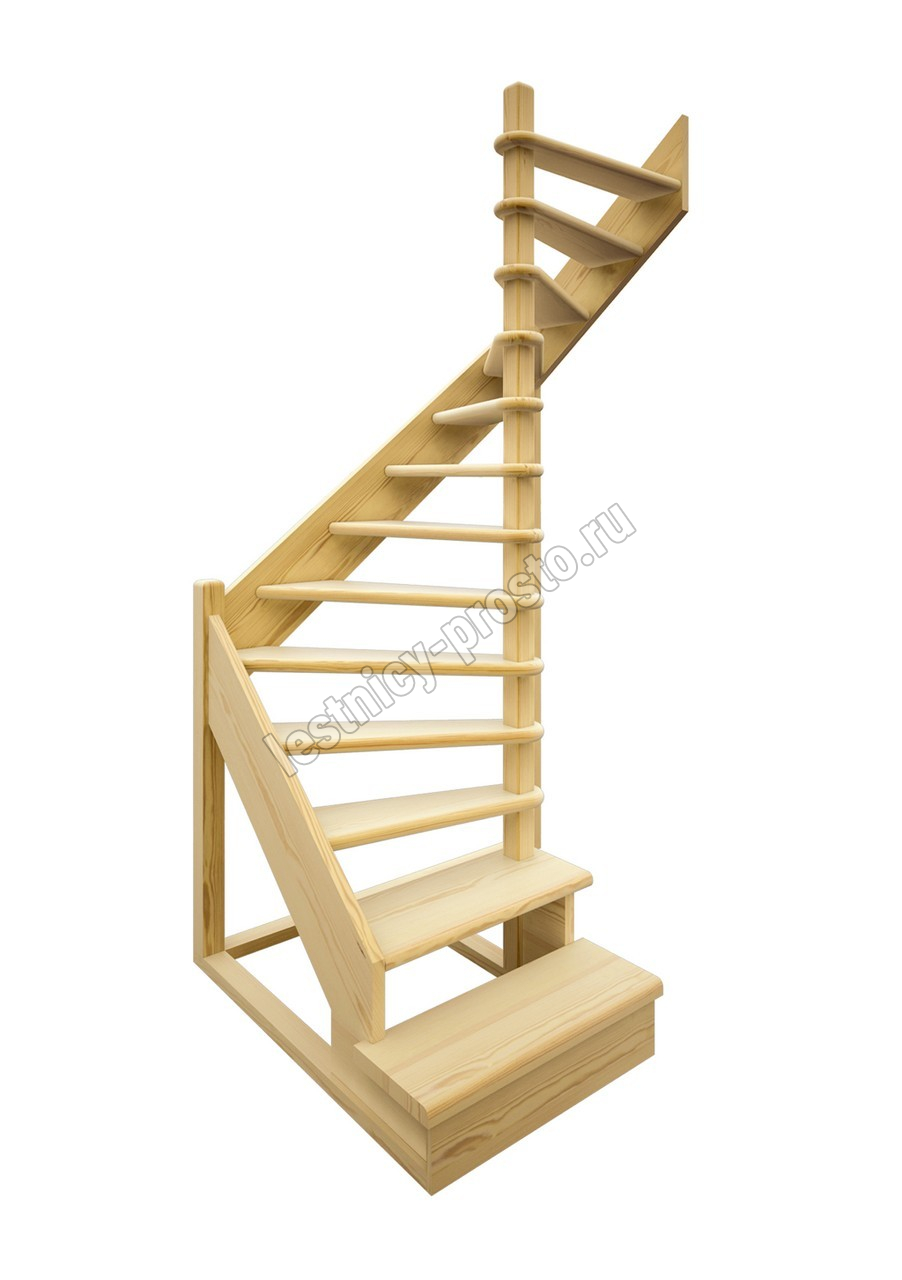 Деревянная межэтажная лестница ЛЕС-01 2525-2720 проем 1640-900, Лиственница
