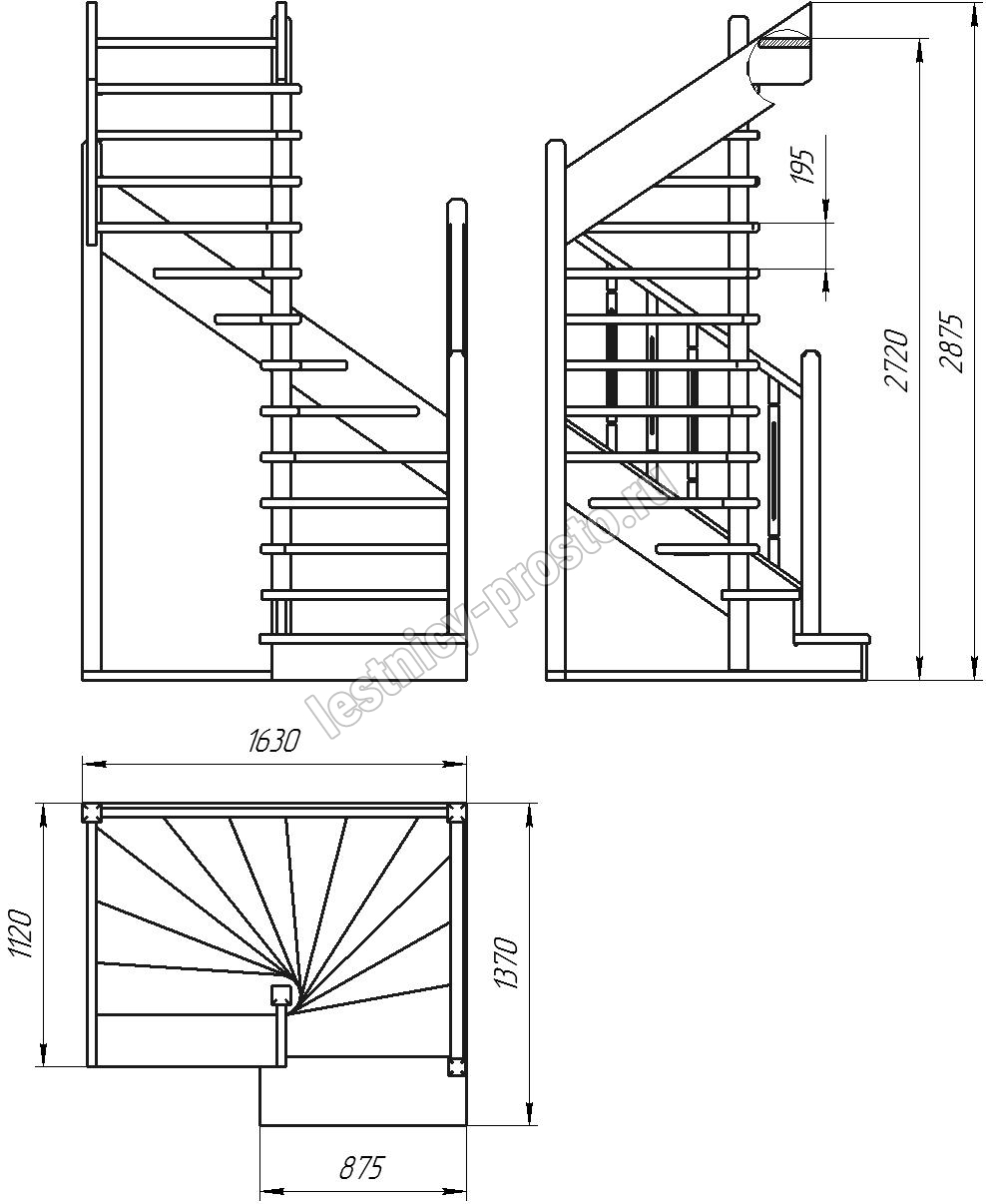 Деревянная межэтажная лестница ЛЕС-03 2720-2920 проем 1630-1120, Лиственница