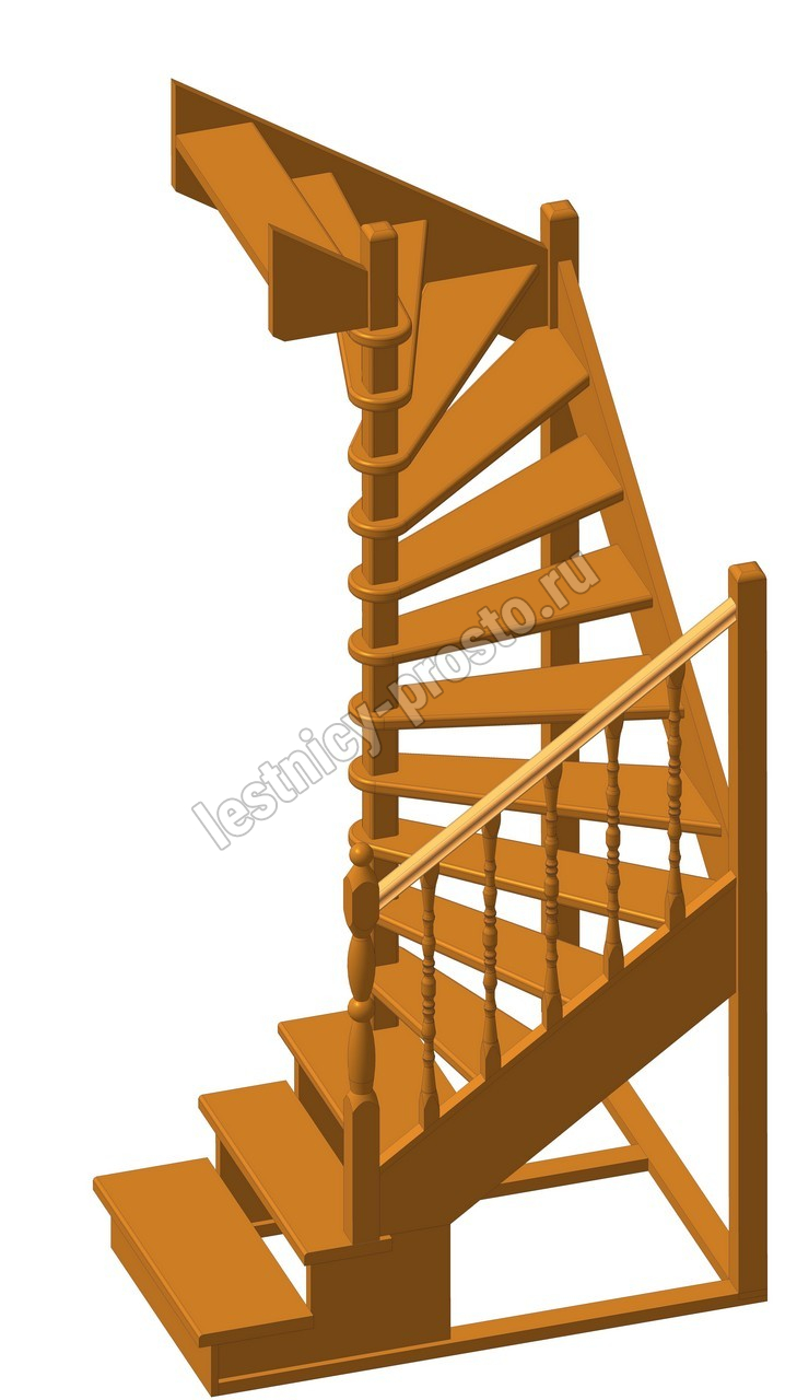 Деревянная межэтажная лестница ЛЕС-03 2915-3075 проем 1630-1120, Бук