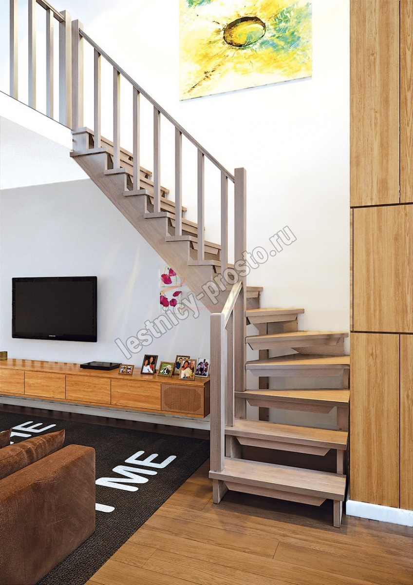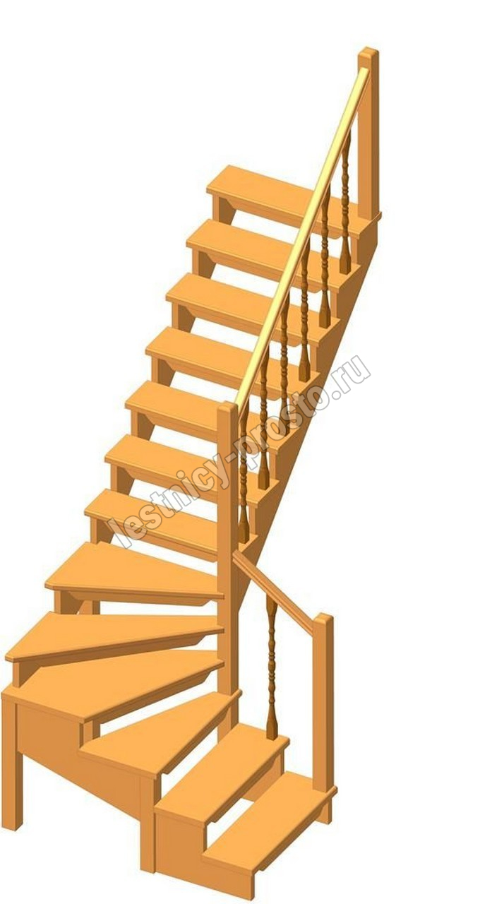 Деревянная межэтажная лестница ЛЕС-09 2690 проем 2405-900, Лиственница