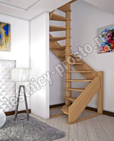 Деревянная межэтажная лестница ЛЕС-1,2ВУ, Лиственница