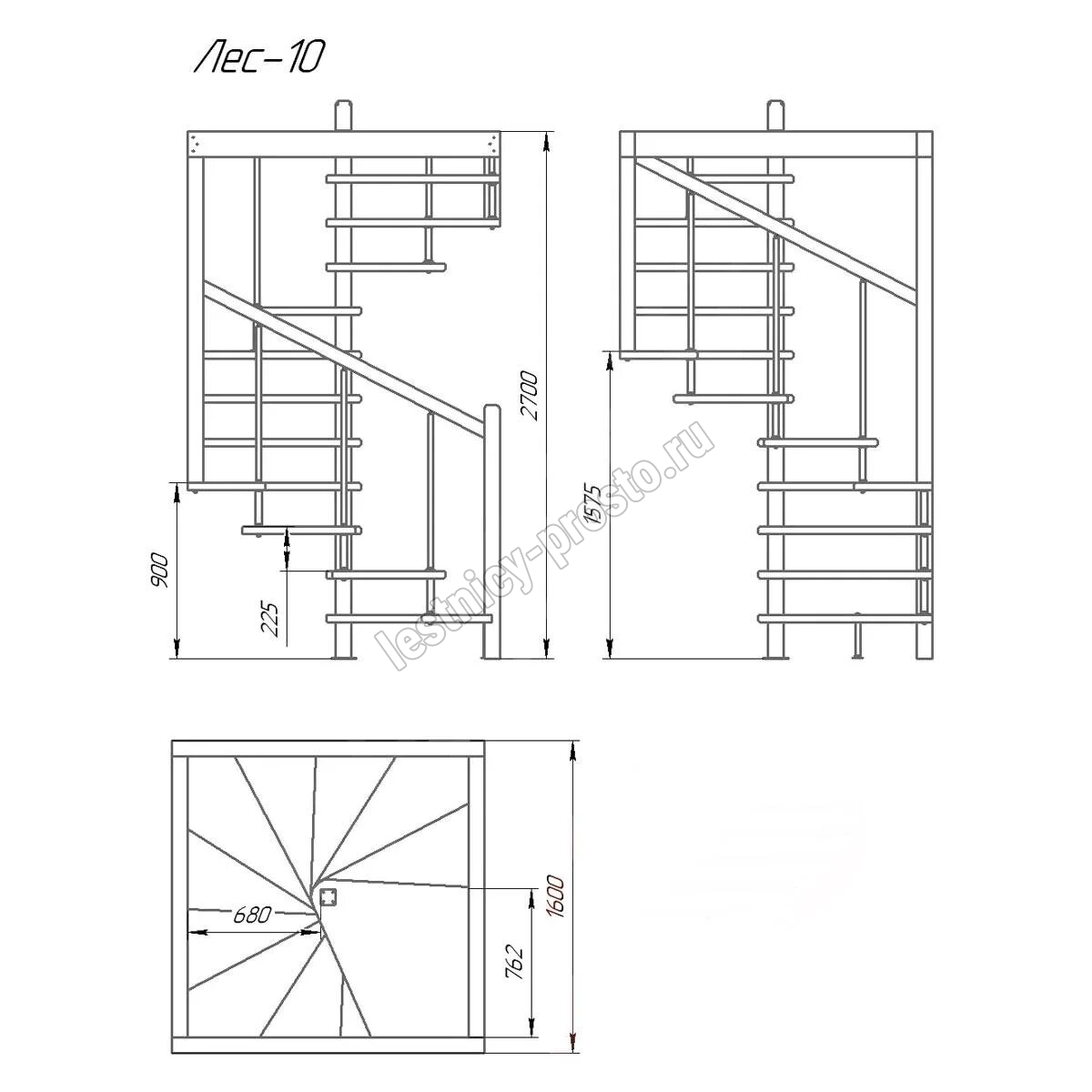 Деревянная межэтажная лестница ЛЕС-10, Лиственница