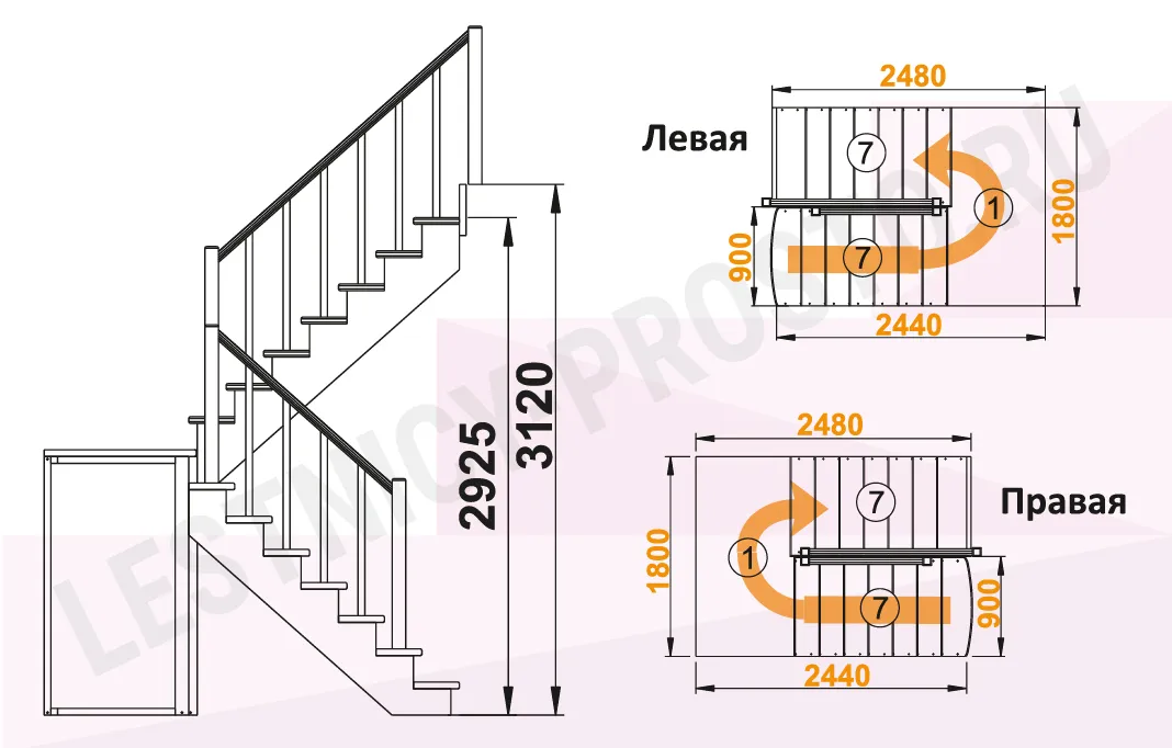 Удобная модель с площадкой и боковым ограждением. Базовая комплектация включает в себя элементы лестницы и ограждения без какого-либо покрытия. Ограждение можно изменить на любое по вашему вкусу (стоимость изменится).
