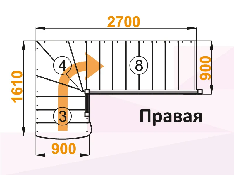 Лестница К-001м/4 с поворотом направо