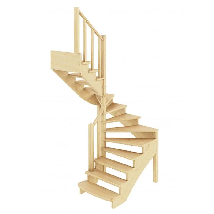 Базовый комплект включает в себя деревянные элементы лестницы и ограждения без какого-либо покрытия.