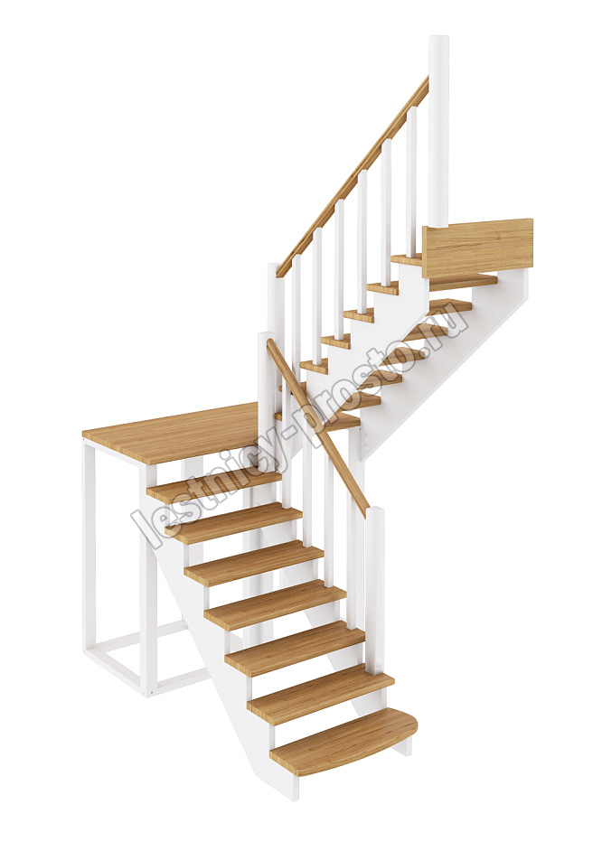Ступени и поручень лестницы выполнены из дуба, остальные элементы из сосны. Возможно изготовление данной модели полностью из дуба.