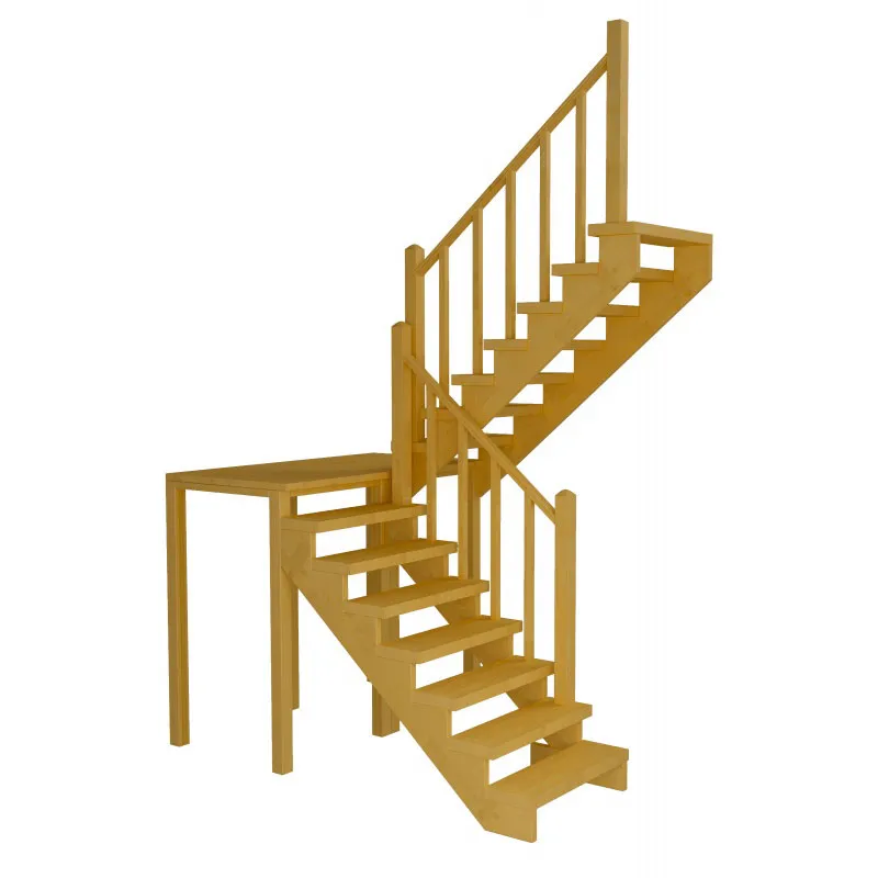 Базовый комплект включает в себя деревянные элементы лестницы и ограждения без какого-либо покрытия.