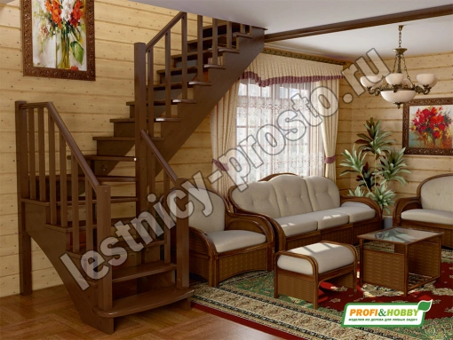 Ступени и поручень лестницы изготовлены из дуба, остальные элементы из сосны.