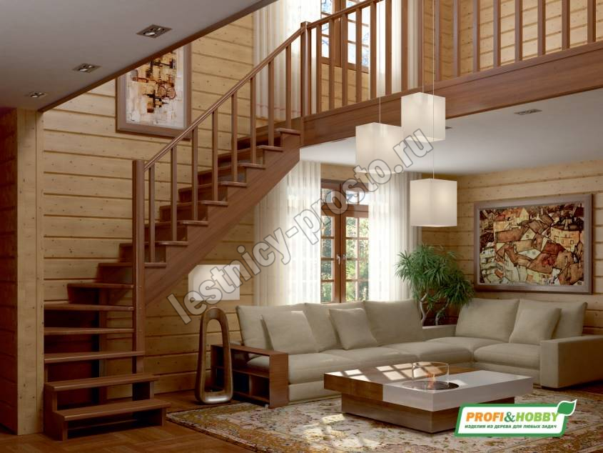 • Базовое ограждение (прямые столбы и балясины), сосна - по одной на ступень