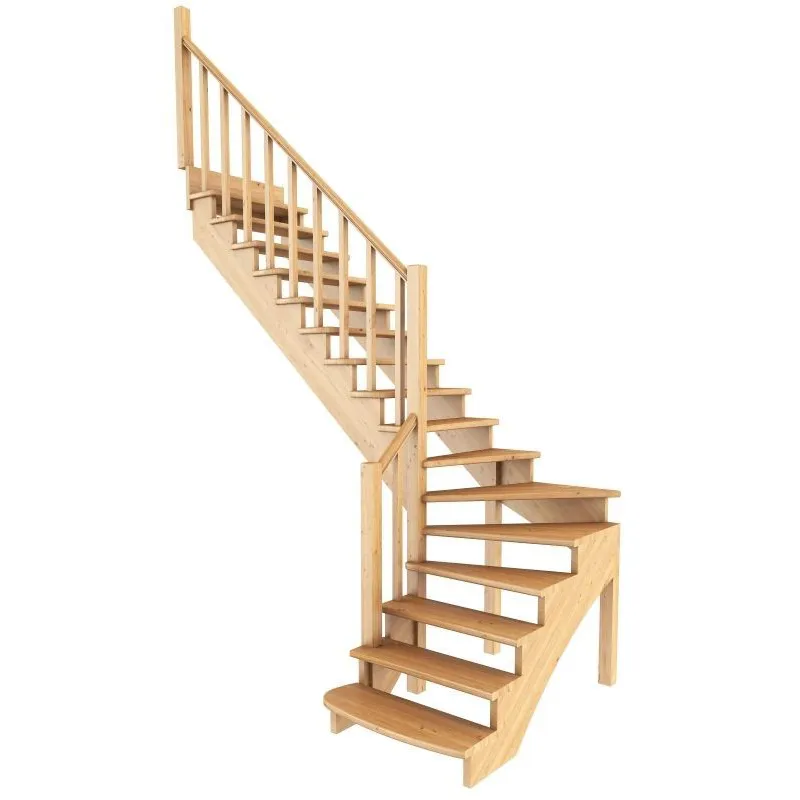 Базовый комплект включает в себя деревянные элементы лестницы и ограждения без какого-либо покрытия.