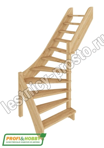Базовый комплект включает в себя деревянные элементы лестницы без какого-либо покрытия.