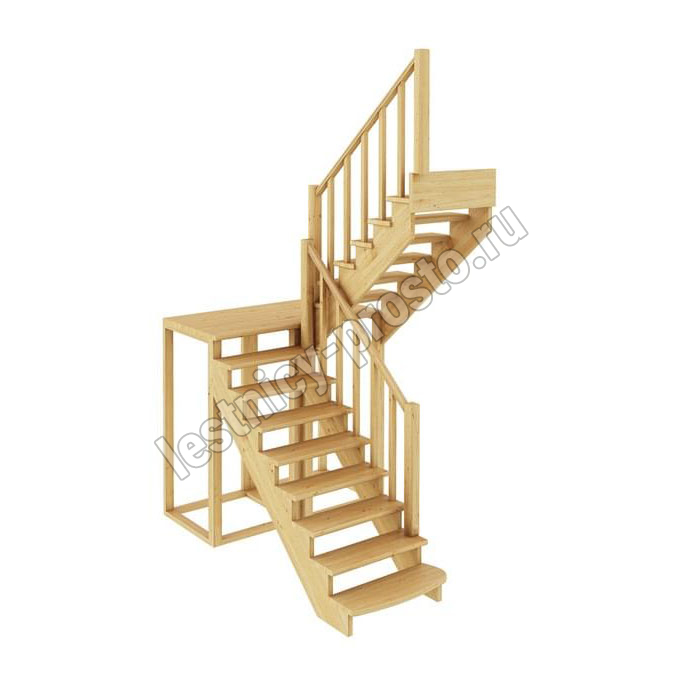 Материал: ясень (ступени и поручень), сосна (косоуры, столбы, балясины)