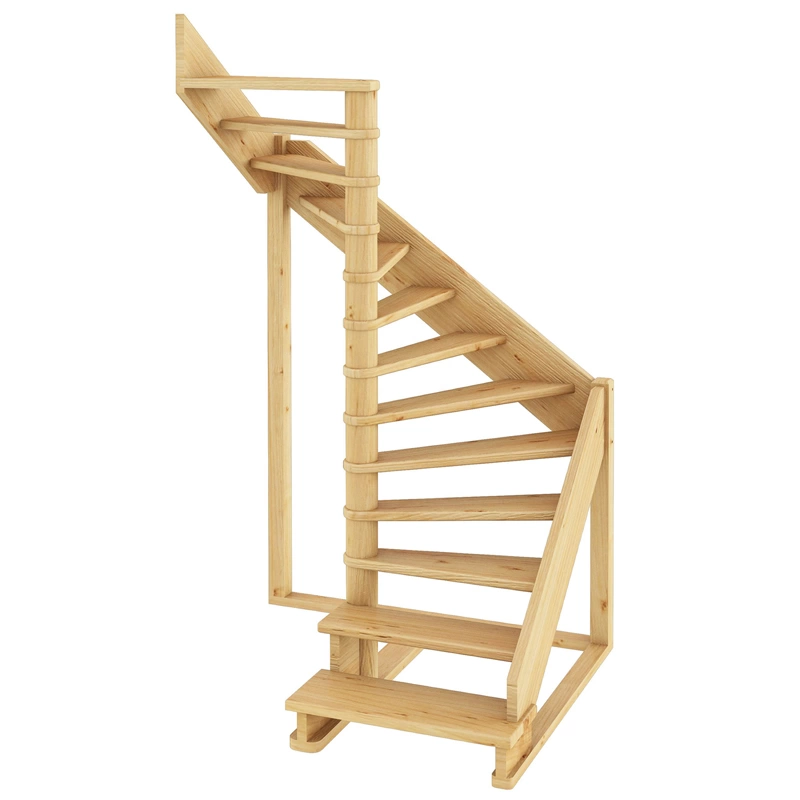 Базовый комплект включает в себя деревянные элементы лестницы без какого-либо покрытия.