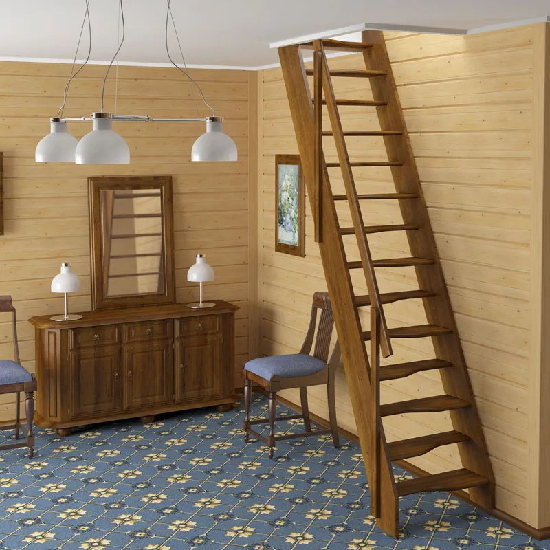 Недорогая простая лестница, хорошо использовать как временный вариант. В комплекте поручень.