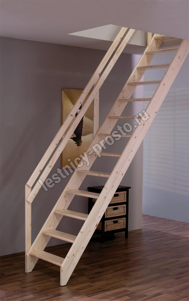 Базовая комплектация включает в себя деревянные элементы лестницы без какого-либо покрытия