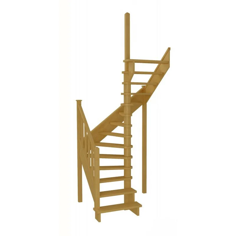 Базовый комплект включает в себя деревянные элементы лестницы и ограждения без какого-либо покрытия. В стандартной комплектации лестницы поставляются с квадратными столбами и точеными балясинами.