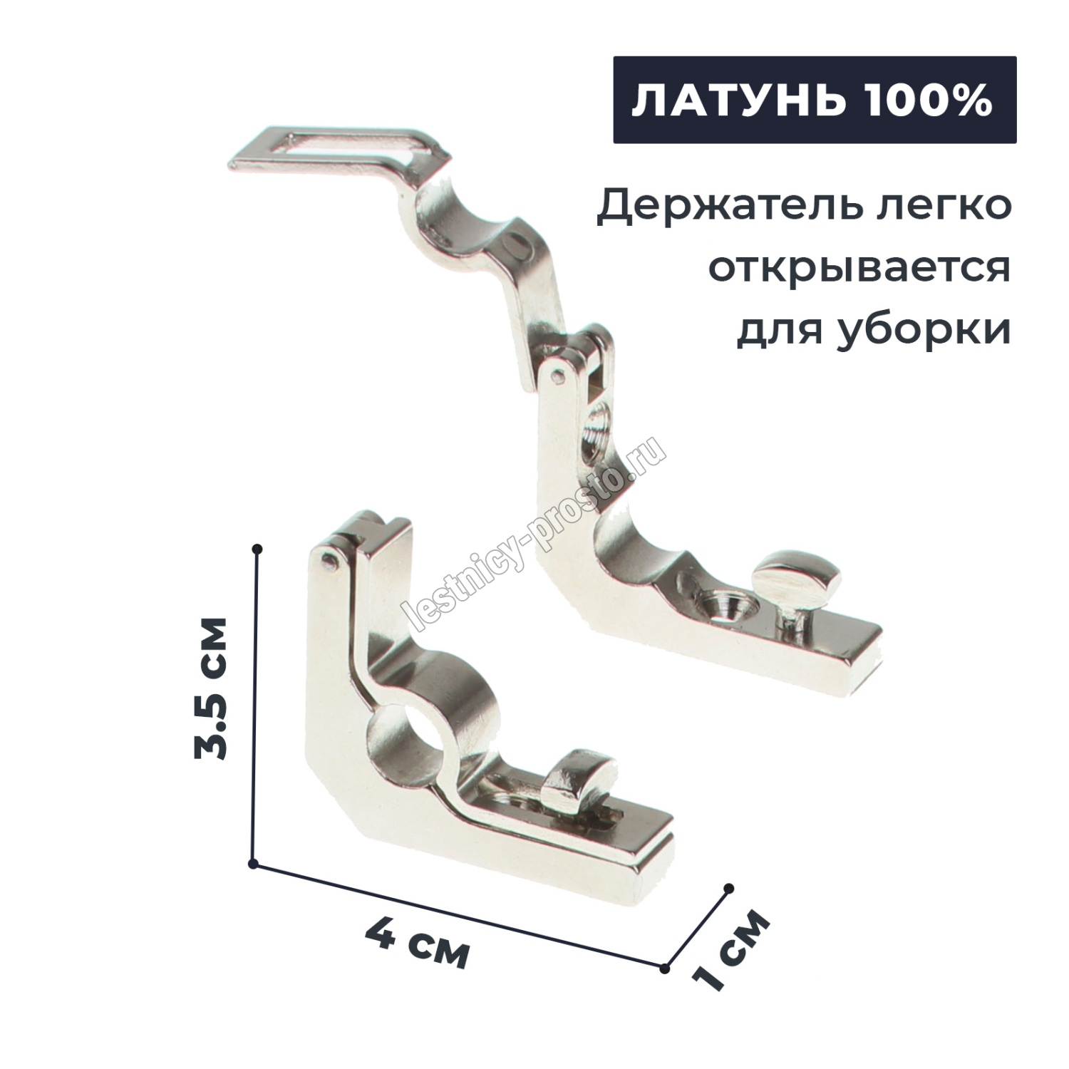 Ковродержатель комплектуется двумя держателями и двумя заглушками из латуни, а также прутком из нержавеющей стали.
