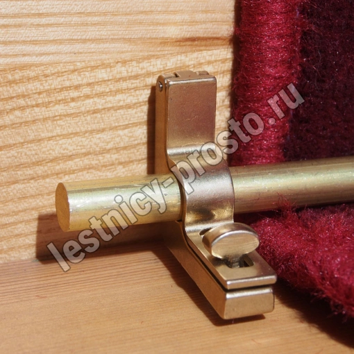Ковродержатель комплектуется двумя держателями из латуни цвета золото, а также цельным прутком из латуни длиной от 171 до 200 см. Конструкция является сборно-разборной не требующей демонтажа креплений, что делает ее долговечной и очень удобной для чистки ковров и ковровых покрытий.