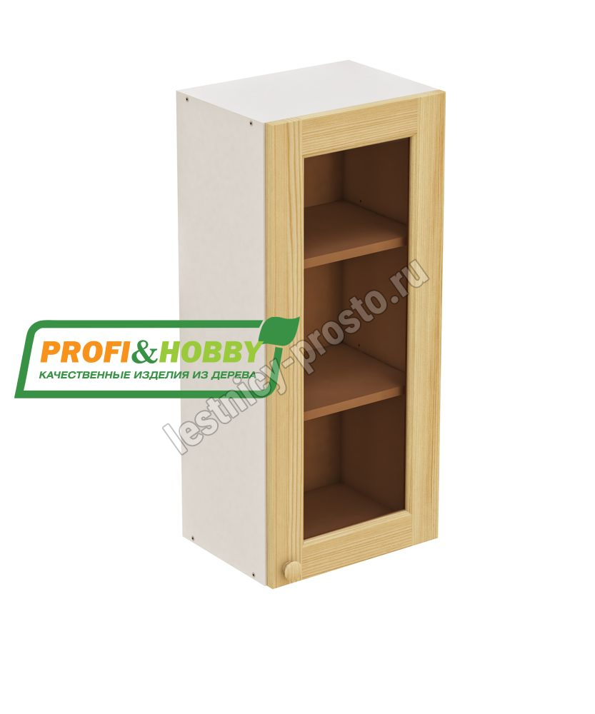 Шкаф навесной 450х340х960 + фасад сосна под стекло бесцветный акриловый лак