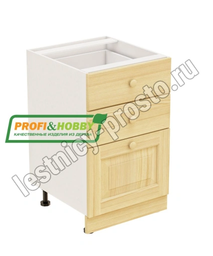 Тумба 3 ящика 500х530х720 + фасад сосна бесцветный акриловый лак