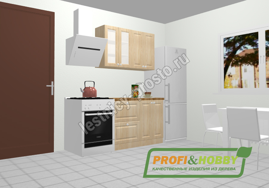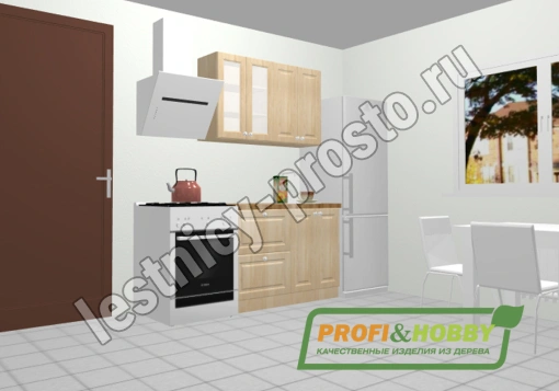Кухня 1.2 х 2.32 м, массив сосны, бесцветный акриловый лак