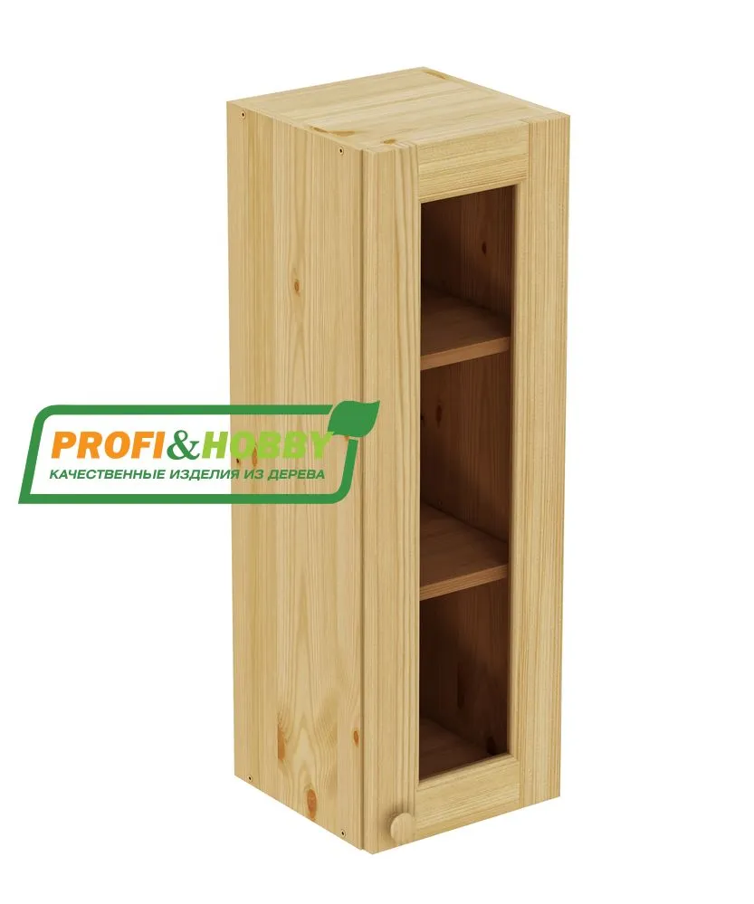 Шкаф навесной 300 х 300 х 900 под стекло, сосна, бесцветный акриловый лак
