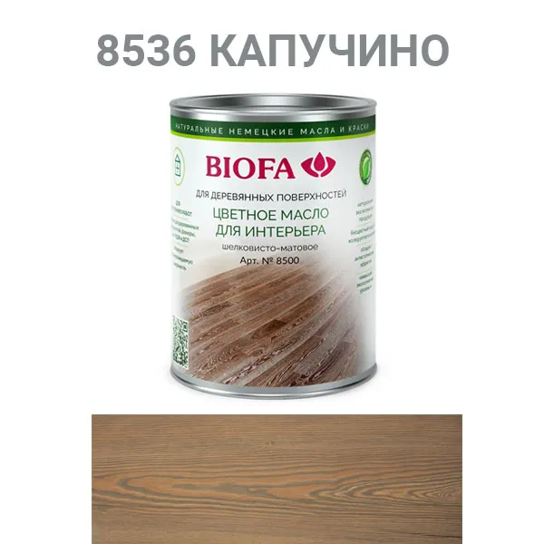 BIOFA Color-Oil For Indoors - не содержащий растворителей продукт, состоящий из высококачественных биомасел и восков. Используется для придания цветового оттенка поверхности древесины и в качестве износостойкого покрытия для мебели, лестниц и всех видов деревянных напольных покрытий, пробки.
