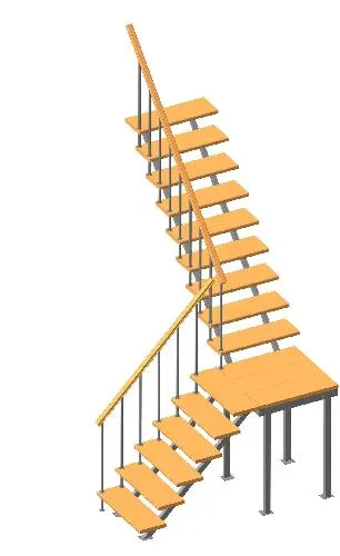 Универсальная лестница на металлическом каркасе с поворотной площадкой. Идеально дополнит любой интерьер, имеет современный вид и удобна в использовании. Монтаж осуществляется силами двух человек на объекте по указаниям, приведенным в паспорте на лестницу.
