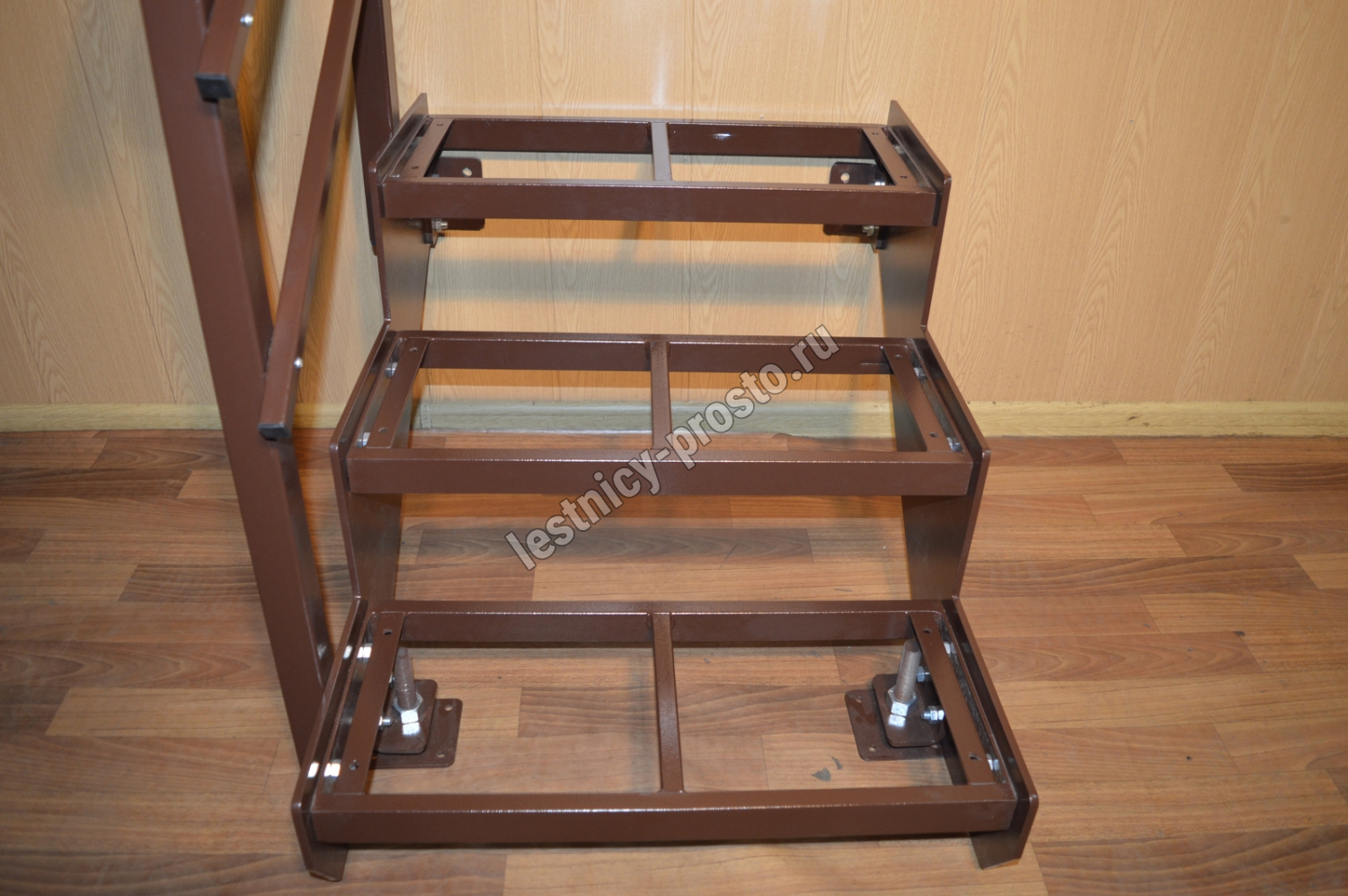 Регулировка высоты осуществляется за счет нижних регулируемых опор и высоты верхней (последней) ступени. Если по какой-то причине Вам не подходят стандартные параметры, мы изготовим для Вас лестницу с любыми необходимыми параметрами.