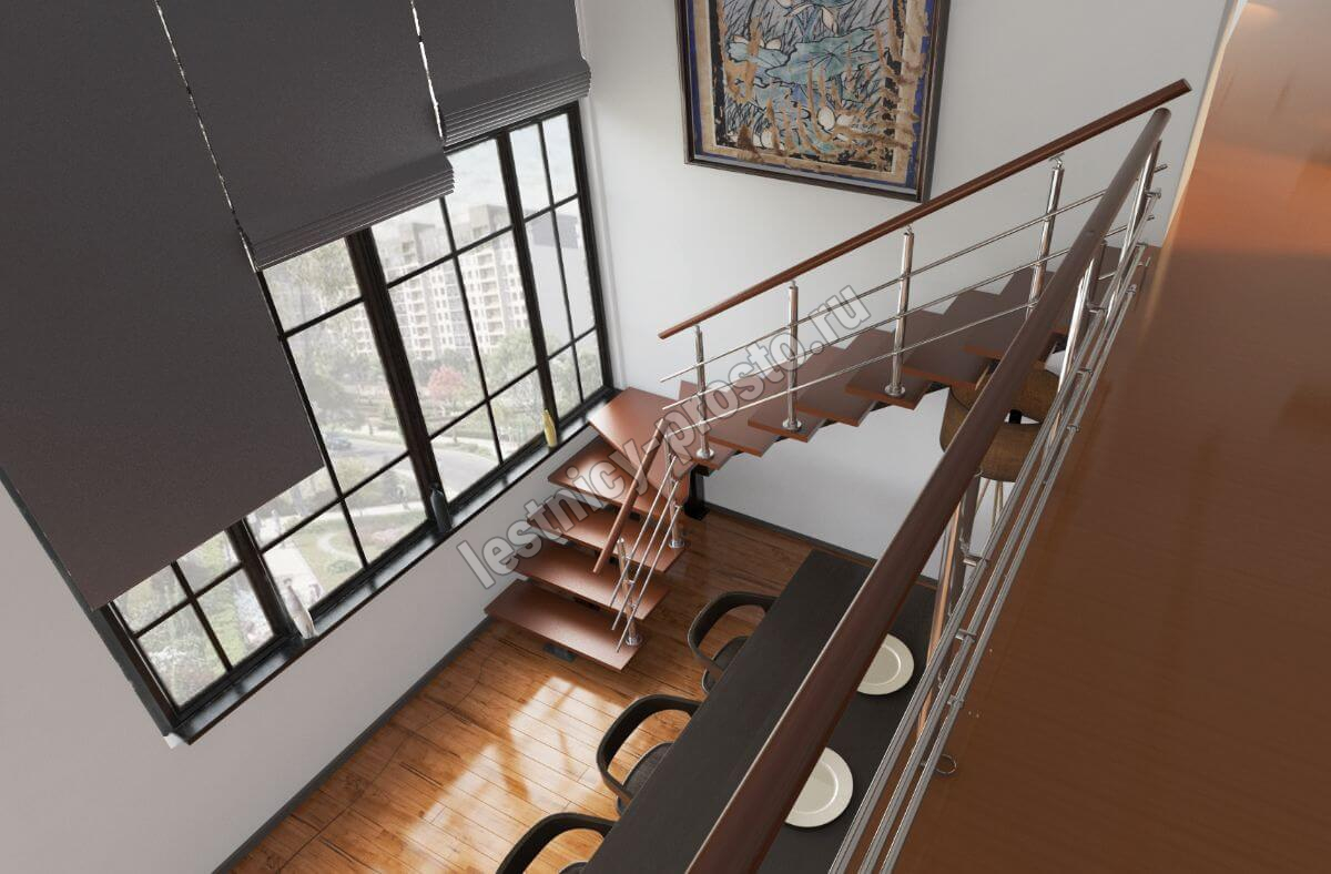 Лестница PROSTO MONO Г-образная h202.5 см, ступени лиственница