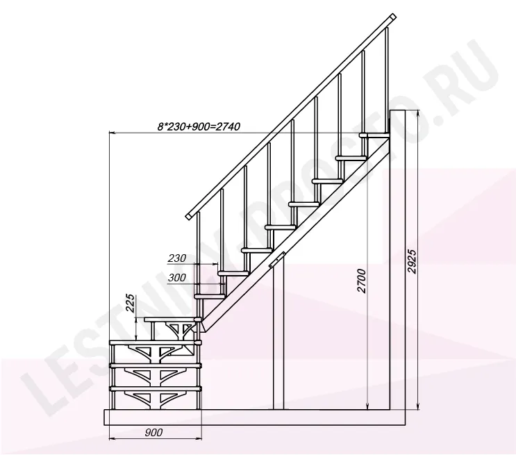 Высота лестницы 2700 - 2925 мм