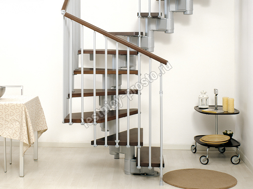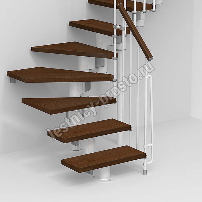 При монтаже этой лестницы, возможно регулировать высоту и глубину шага, таким образом можно получить лестницу под высоты этажа в диапазоне 2250 - 3030 мм, кроме того, установив дополнительный комплект увеличения высоты, можно поднять высоту лестницы до 3730 мм. Ширина проступи регулируется при монтаже в пределах 180 - 220 мм. Каркас и стойки ограждения выполнены из пластифицированного металла. Уникальный модульный каркас позволяет собрать лестницу необходимой формы.
