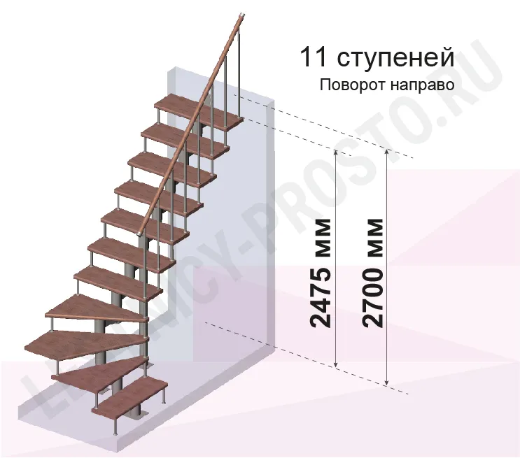 Высота лестницы 2475 - 2700 (11 ступеней) мм