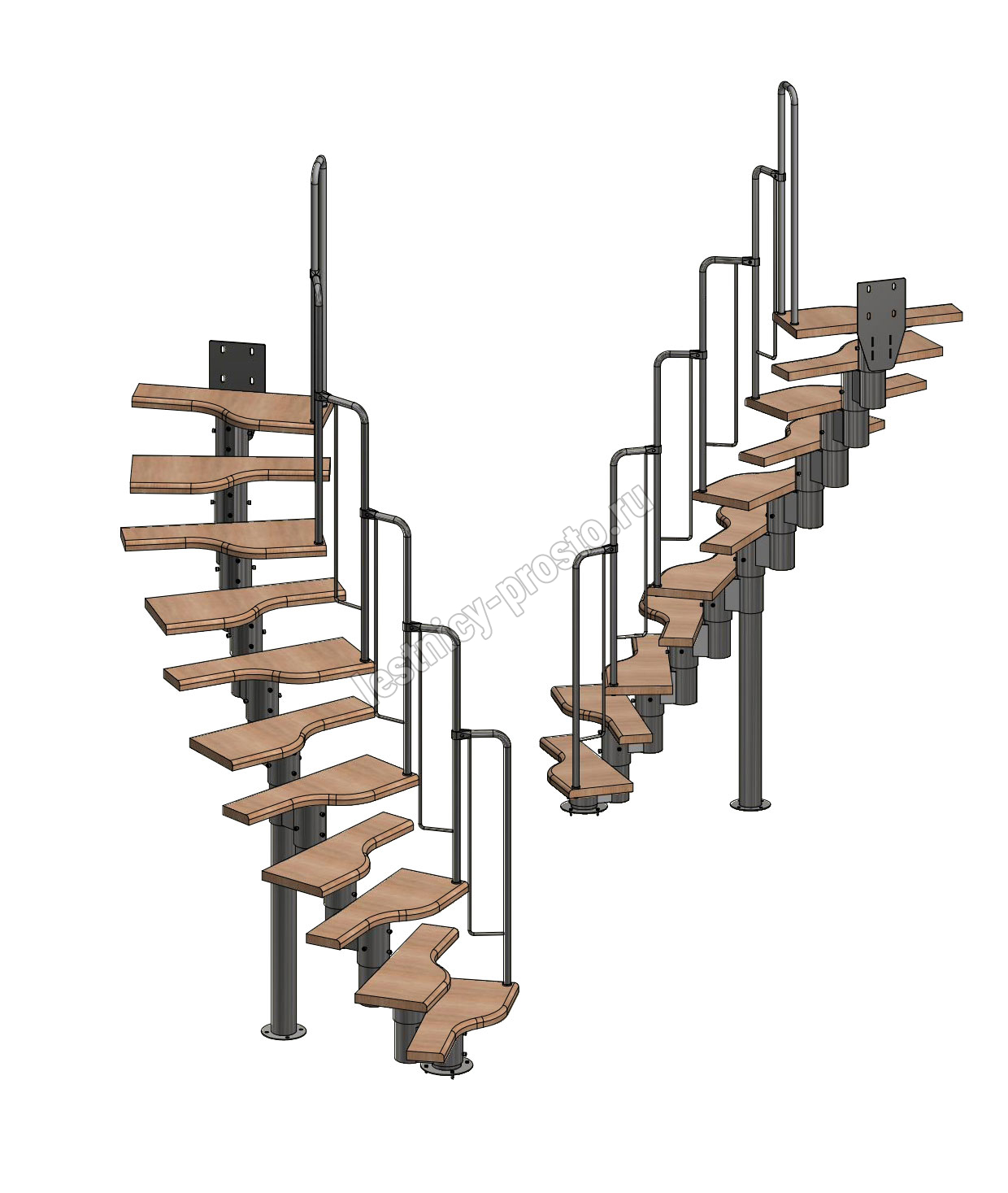 Лестница Prosto Urban Black гусиный шаг 700 мм, h198-288 см (11 ступеней), дуб