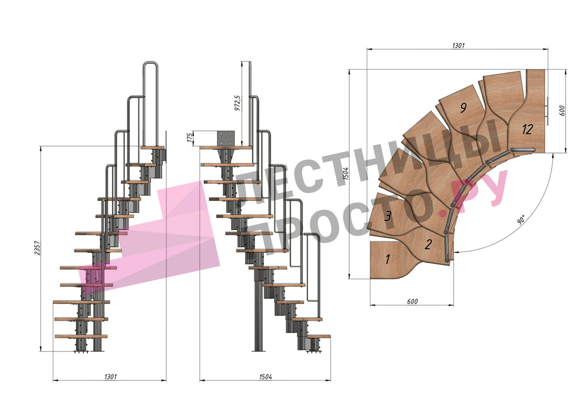 Высота лестницы 2160 - 3120 (12 ступеней) мм