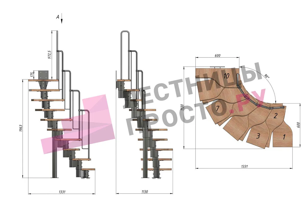 Лестница Prosto Urban Black гусиный шаг 600 мм/ Ступени из берёзы мультиплекс