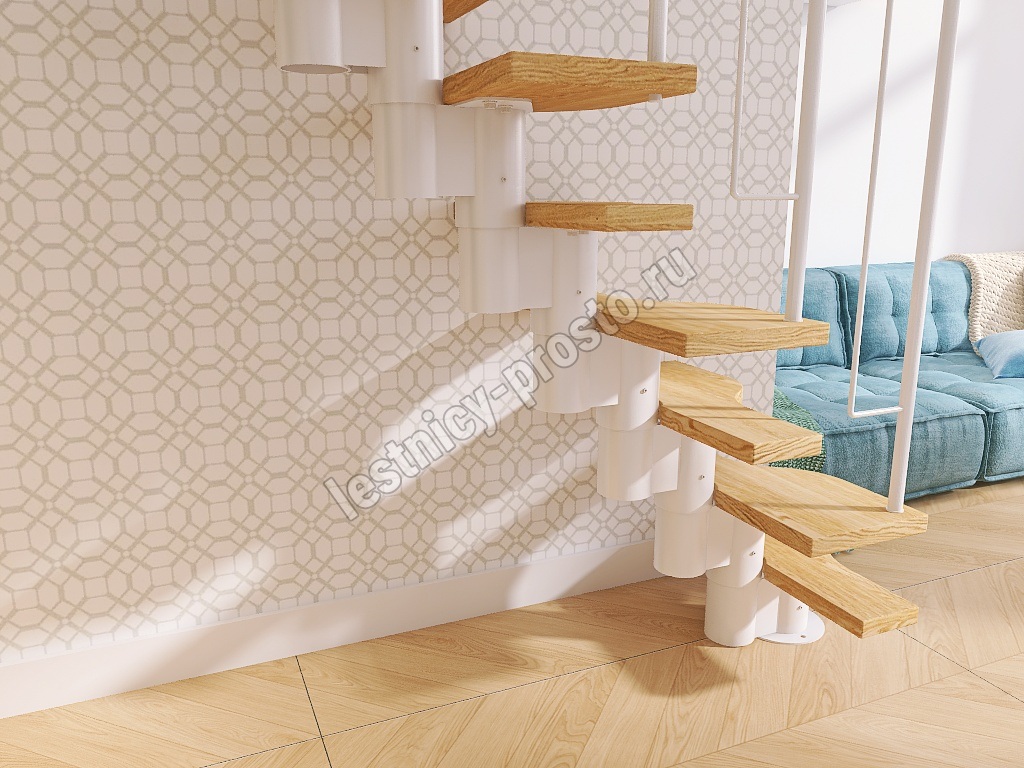 Лестница Prosto Urban White гусиный шаг 700 мм, h216-312 см (12 ступеней), ясень