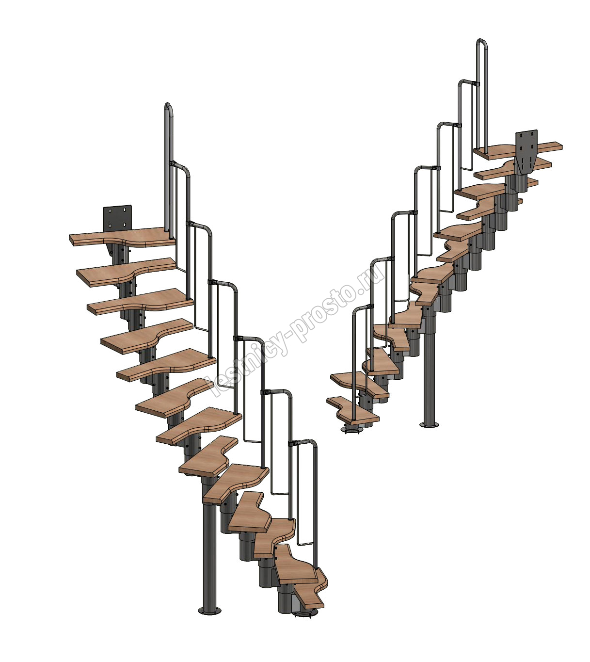 - Регулируемый по высоте в пределах 180-240 мм модуль. Большой диаметр и толщина металла деталей обеспечивают жесткость и прочность конструкции. Регулировка каждого модуля по высоте позволяет легко приспособить лестницу под ваше помещение.