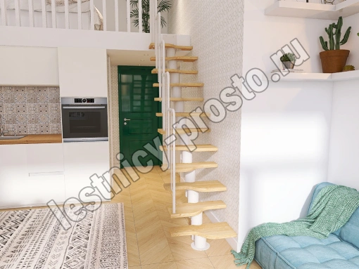 Лестница Prosto Urban White гусиный шаг 700 мм, h234-336 см (13 ступеней), дуб