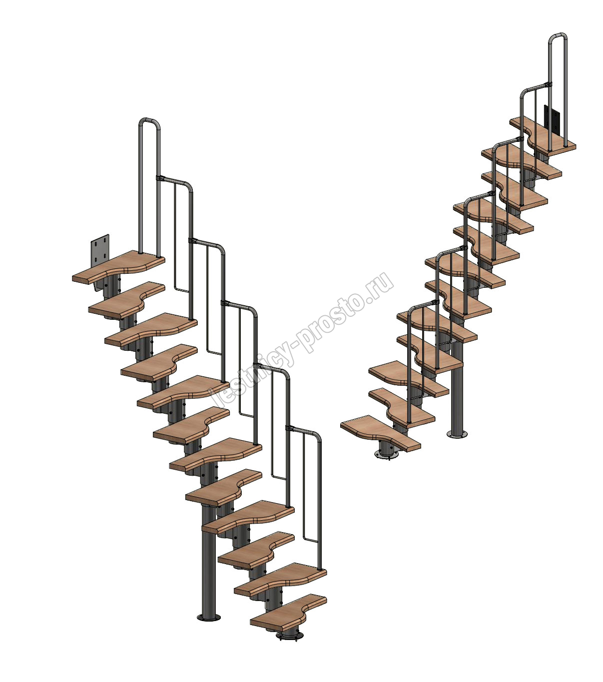 - Регулируемый по высоте в пределах 180-240 мм модуль. Большой диаметр и толщина металла деталей обеспечивают жесткость и прочность конструкции. Регулировка каждого модуля по высоте позволяет легко приспособить лестницу под ваше помещение.
