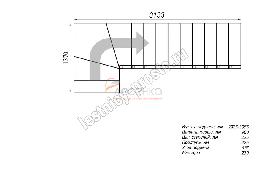 Высота лестницы 2925 - 3055 мм