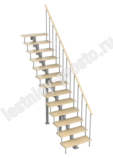 Модульная лестница Стандарт 2925-3055, Серый, Сосна, Нержавеющая сталь