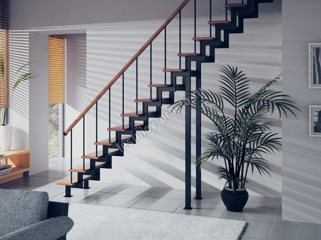 Основой лестницы Prosto Due 40×80 служит двойной металлический каркас из профильной трубы 40×80 мм (включая 2 опоры на пол), который обеспечивает надёжную прочность конструкции и современный актуальный дизайн.