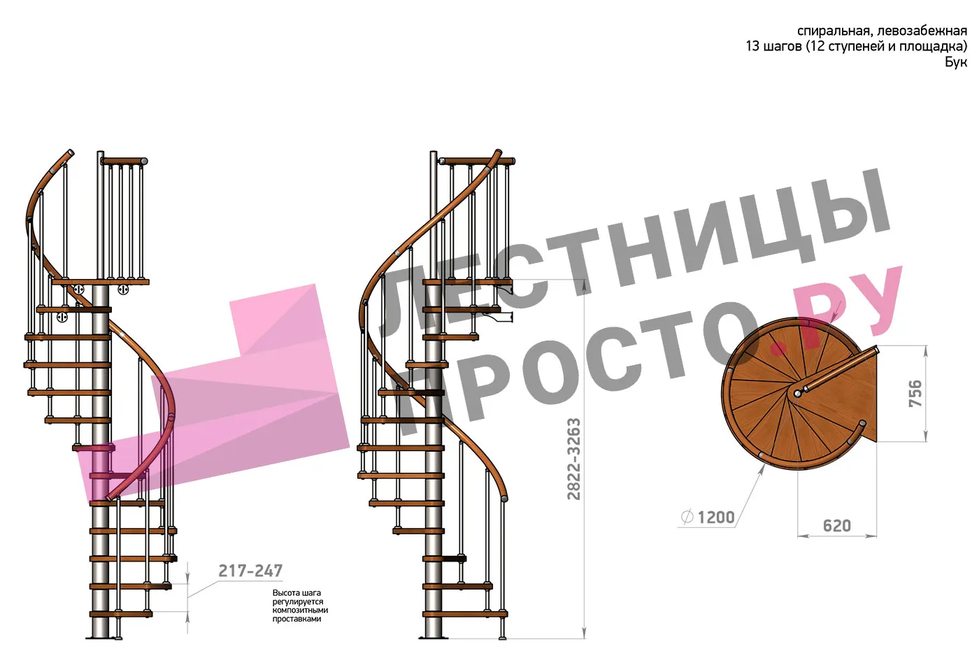 Правая, d=120см, 12 ступеней + площадкам