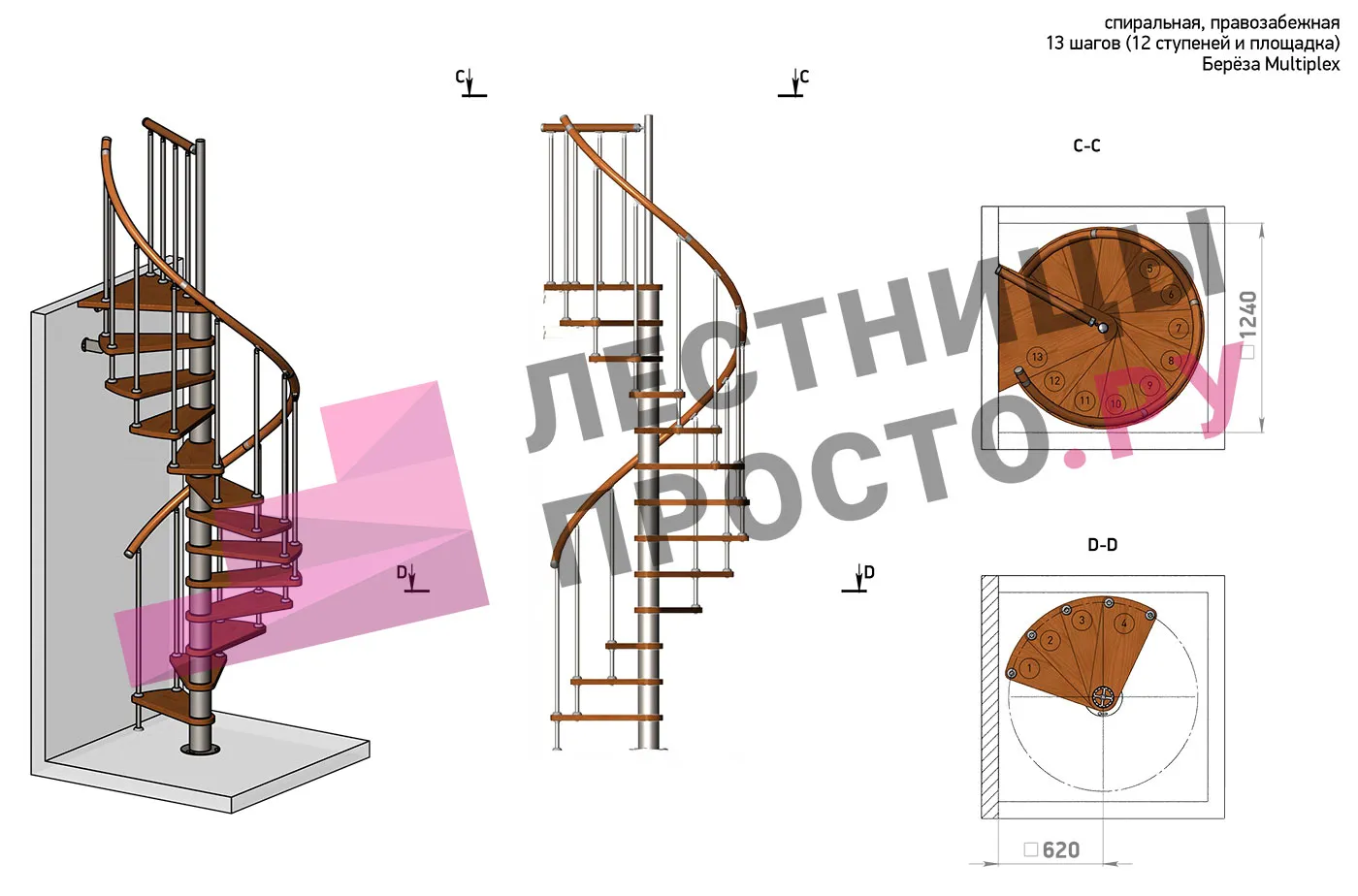 Винтовая лестница Prosto Spiral Black D120см, h275.7-313.9 см